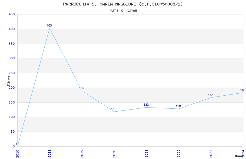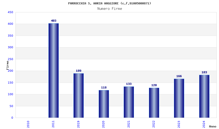 | Anno | Firme | Importi | Media | Naz. | Reg. | Prov. | Comu. |