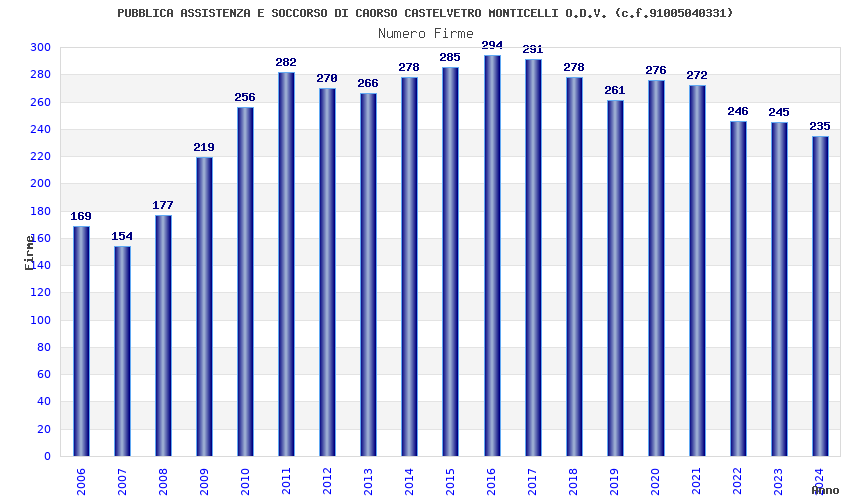 Anno Firme Importi Media Naz. Reg. Prov. Comu.