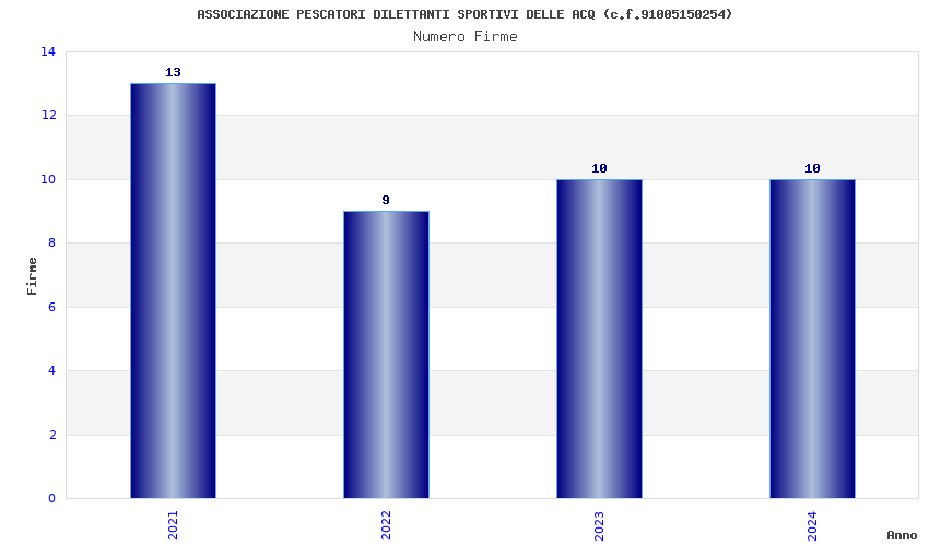 | Anno | Firme | Importi | Media | Naz. | Reg. | Prov. | Comu. |