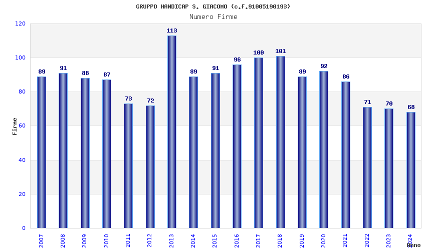 | 2013 | 113 | 2.704,48 | 23,93 | 14.832 | 3.449 | 124 | 21 |