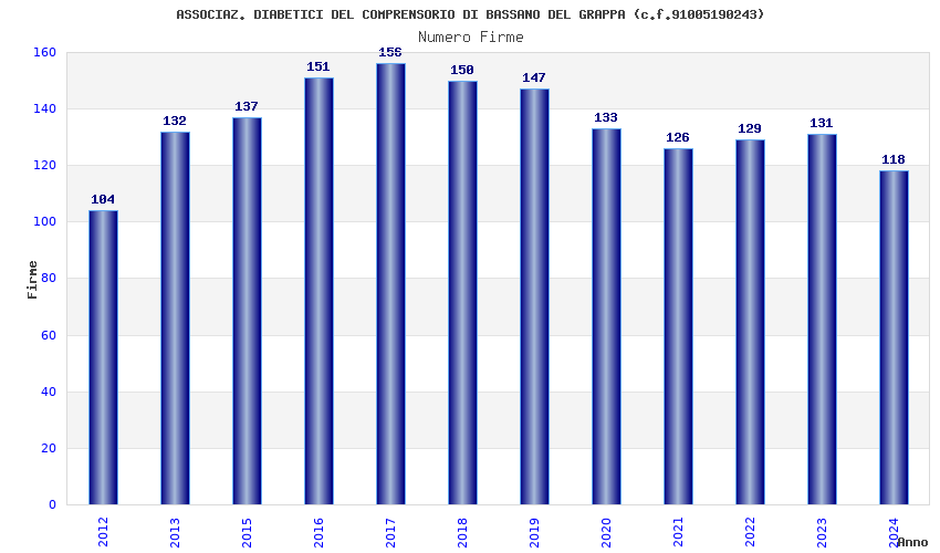 | Anno | Firme | Importi | Media | Naz. | Reg. | Prov. | Comu. |