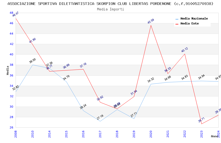 | Anno | Firme | Importi | Media | Naz. | Reg. | Prov. | Comu. |