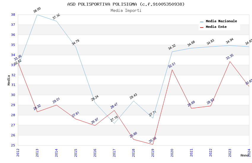 | Anno | Firme | Importi | Media | Naz. | Reg. | Prov. | Comu. |