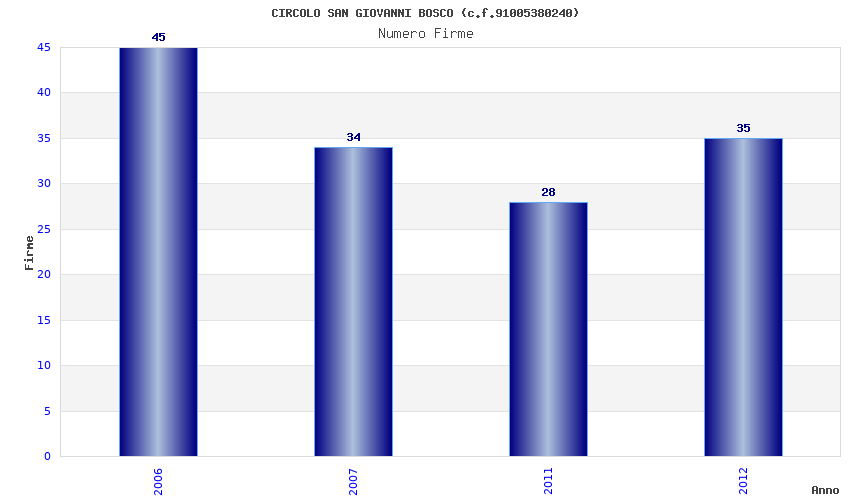 | Anno | Firme | Importi | Media | Naz. | Reg. | Prov. | Comu. |