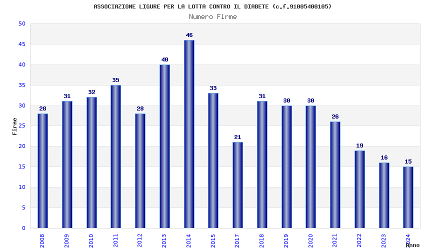 | Anno | Firme | Importi | Media | Naz. | Reg. | Prov. | Comu. |