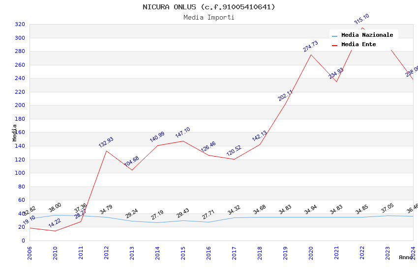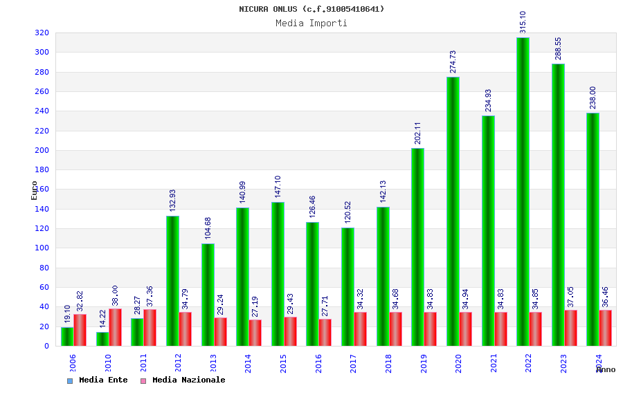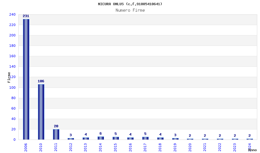 | Anno | Firme | Importi | Media | Naz. | Reg. | Prov. | Comu. |