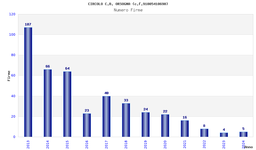 | Anno | Firme | Importi | Media | Naz. | Reg. | Prov. | Comu. |