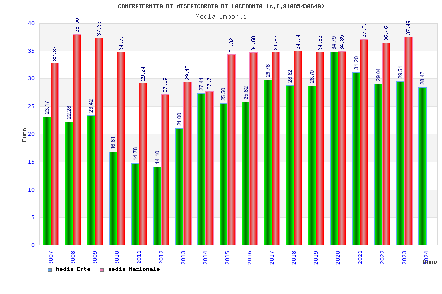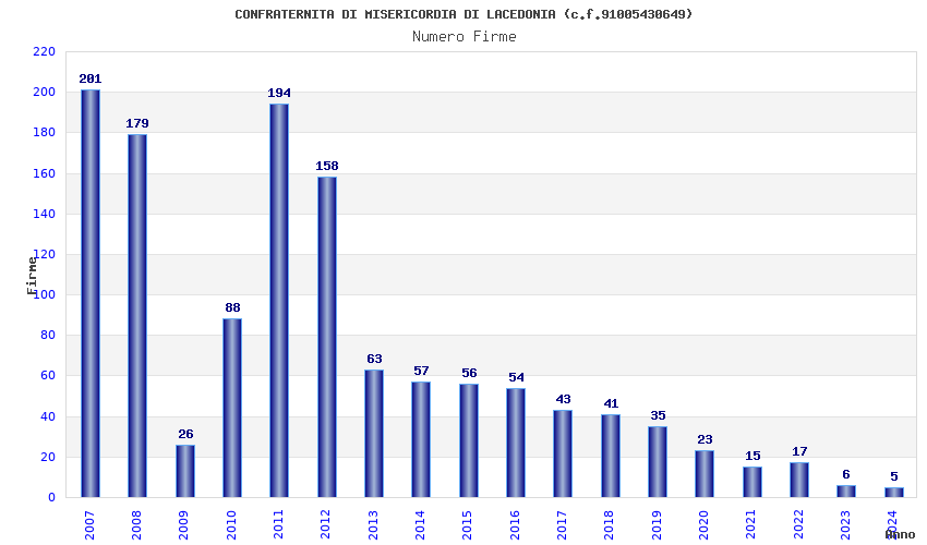 | Anno | Firme | Importi | Media | Naz. | Reg. | Prov. | Comu. |