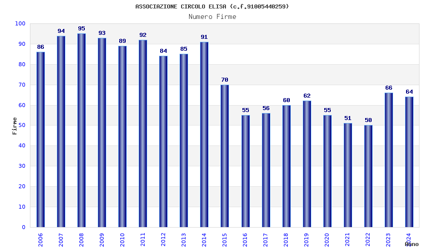 | Anno | Firme | Importi | Media | Naz. | Reg. | Prov. | Comu. |