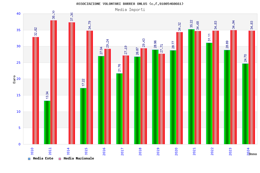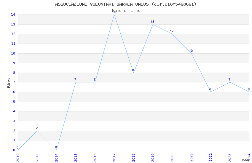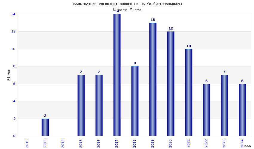 | Anno | Firme | Importi | Media | Naz. | Reg. | Prov. | Comu. |