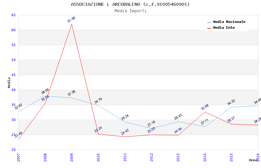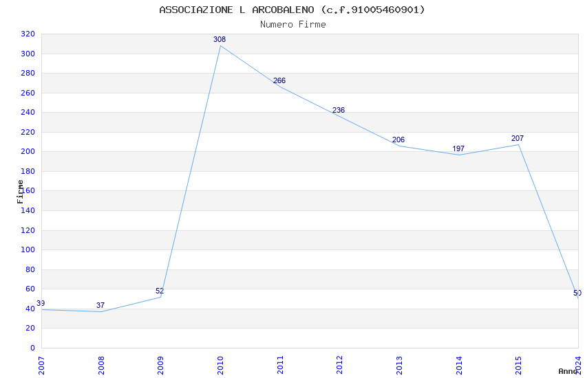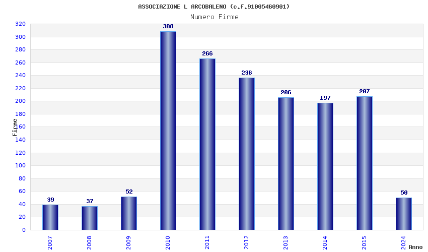 | Anno | Firme | Importi | Media | Naz. | Reg. | Prov. | Comu. |