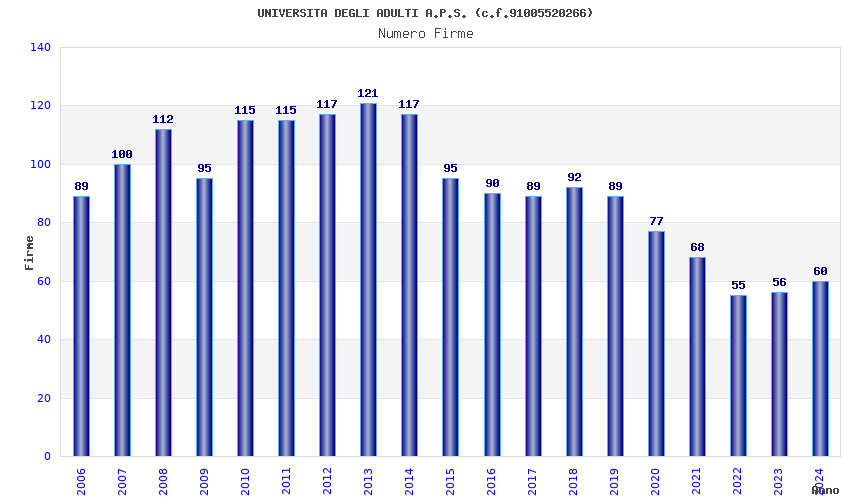 | Anno | Firme | Importi | Media | Naz. | Reg. | Prov. | Comu. |