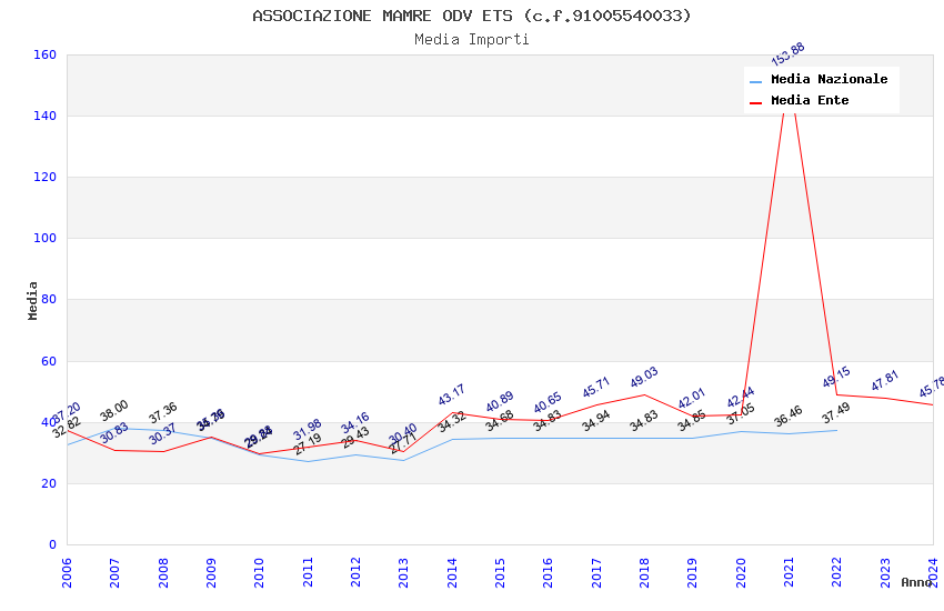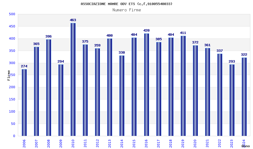 | Anno | Firme | Importi | Media | Naz. | Reg. | Prov. | Comu. |