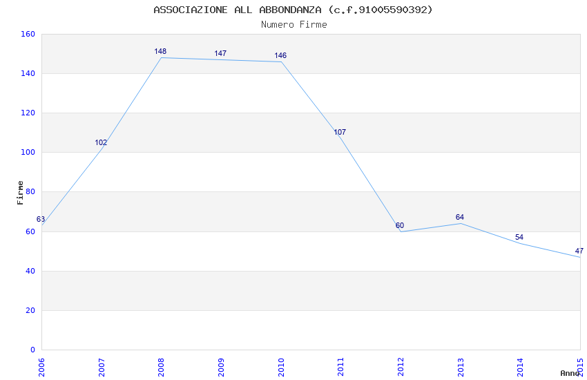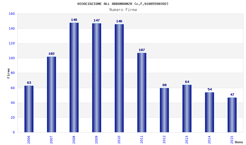 | Anno | Firme | Importi | Media | Naz. | Reg. | Prov. | Comu. |