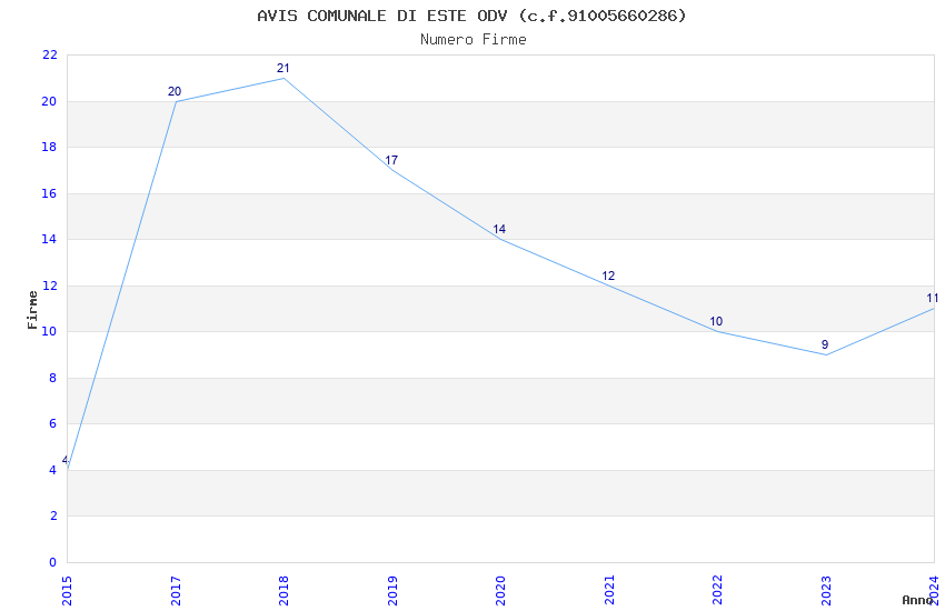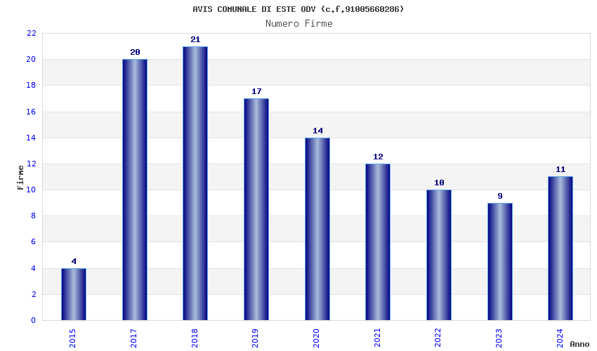 | 2017 | 20 | 409,59 | 20,48 | 46.266 | 4.241 | 892 | 15 |