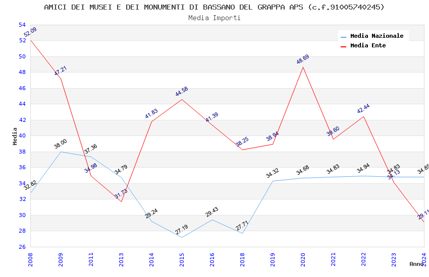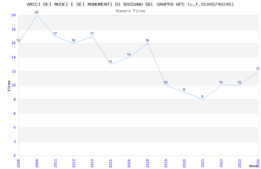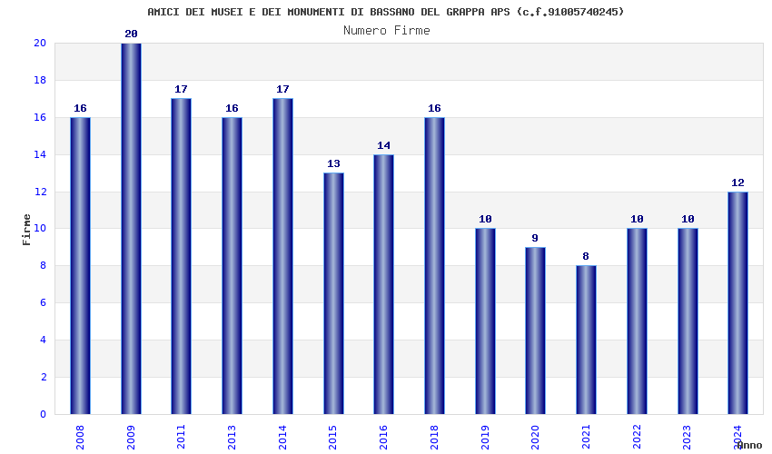 | Anno | Firme | Importi | Media | Naz. | Reg. | Prov. | Comu. |