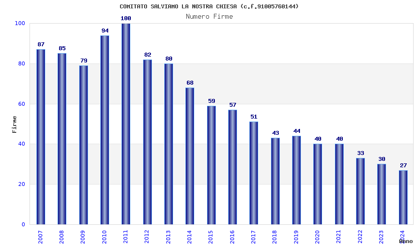 | Anno | Firme | Importi | Media | Naz. | Reg. | Prov. | Comu. |