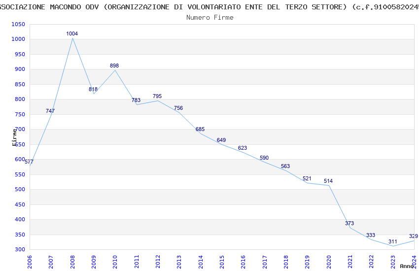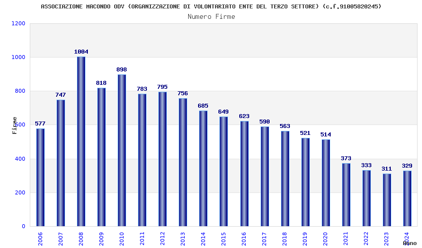 | Anno | Firme | Importi | Media | Naz. | Reg. | Prov. | Comu. |