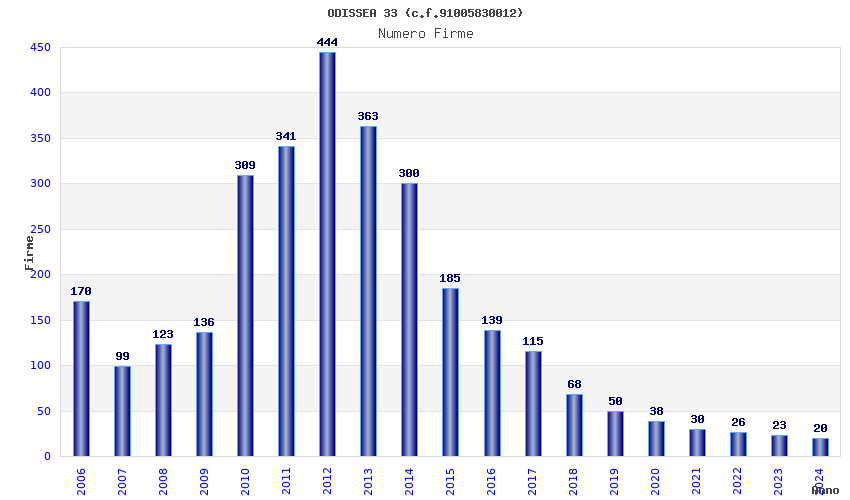| Anno | Firme | Importi | Media | Naz. | Reg. | Prov. | Comu. |