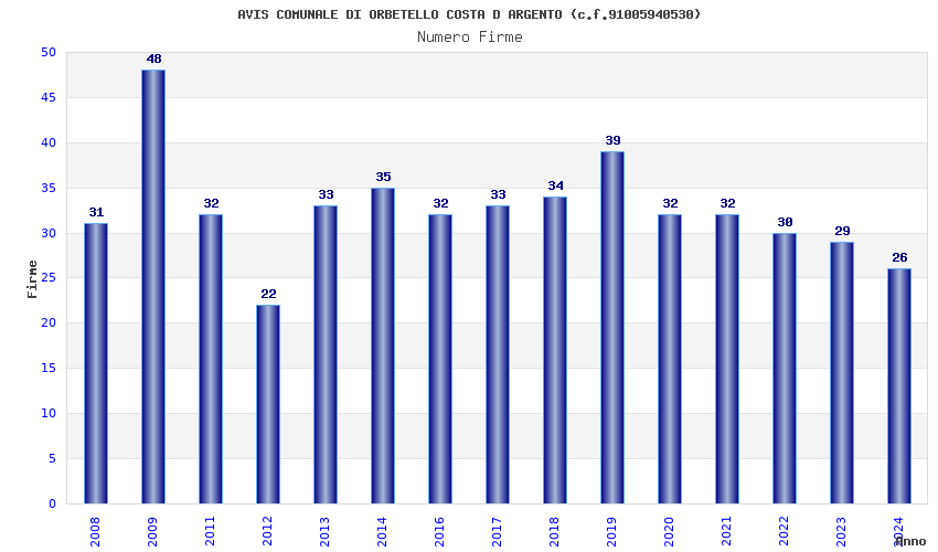 Anno Firme Importi Media Naz. Reg. Prov. Comu.