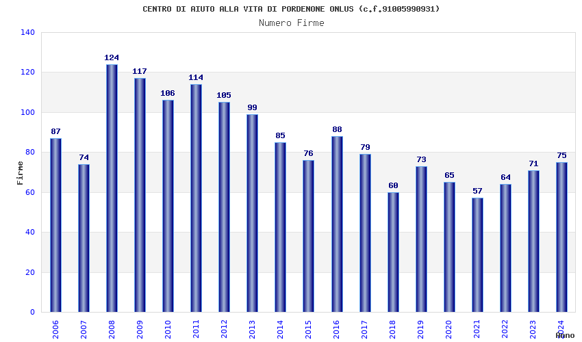 | Anno | Firme | Importi | Media | Naz. | Reg. | Prov. | Comu. |