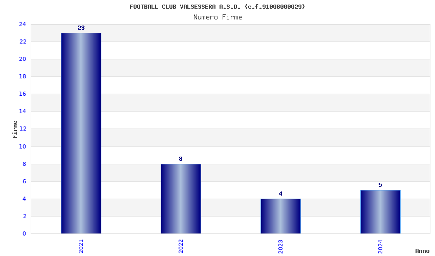 | Anno | Firme | Importi | Media | Naz. | Reg. | Prov. | Comu. |