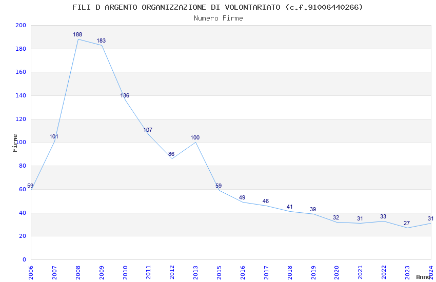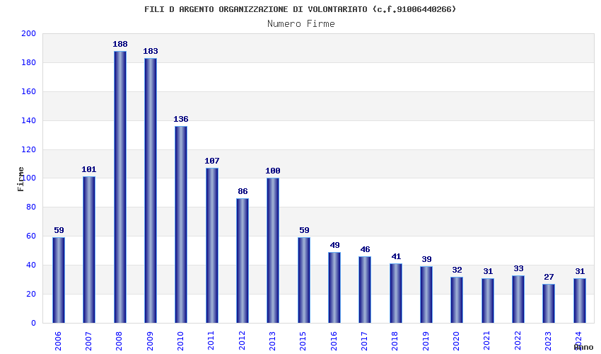 | Anno | Firme | Importi | Media | Naz. | Reg. | Prov. | Comu. |
