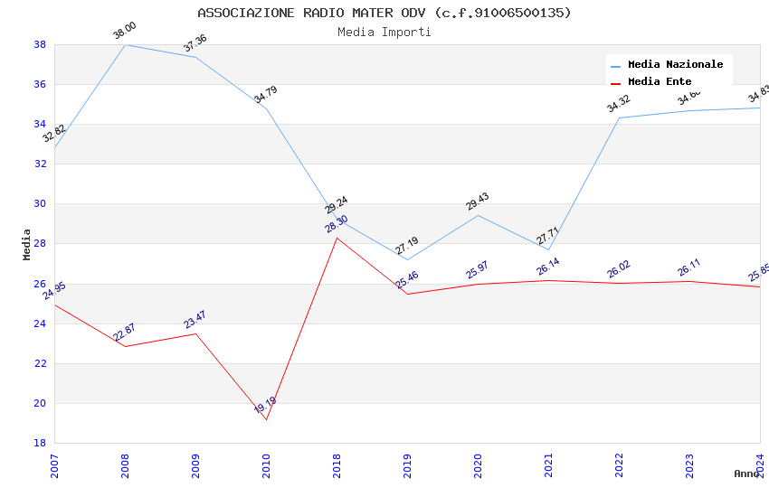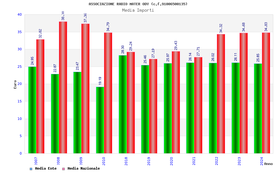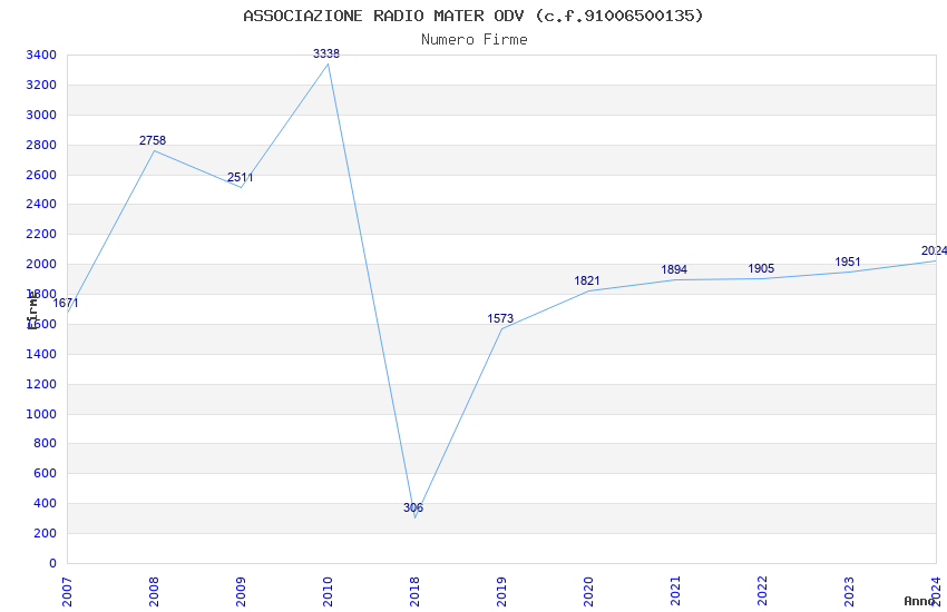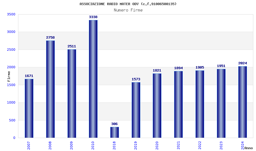 | Anno | Firme | Importi | Media | Naz. | Reg. | Prov. | Comu. |