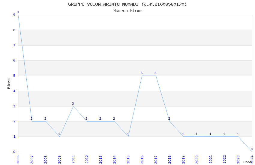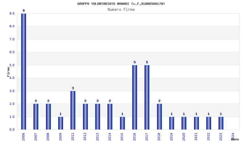 | Anno | Firme | Importi | Media | Naz. | Reg. | Prov. | Comu. |