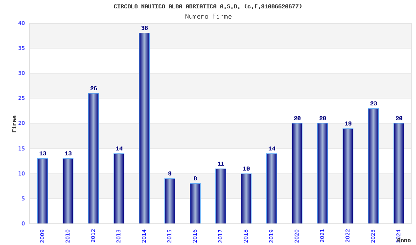 | Anno | Firme | Importi | Media | Naz. | Reg. | Prov. | Comu. |