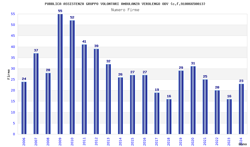 | Anno | Firme | Importi | Media | Naz. | Reg. | Prov. | Comu. |