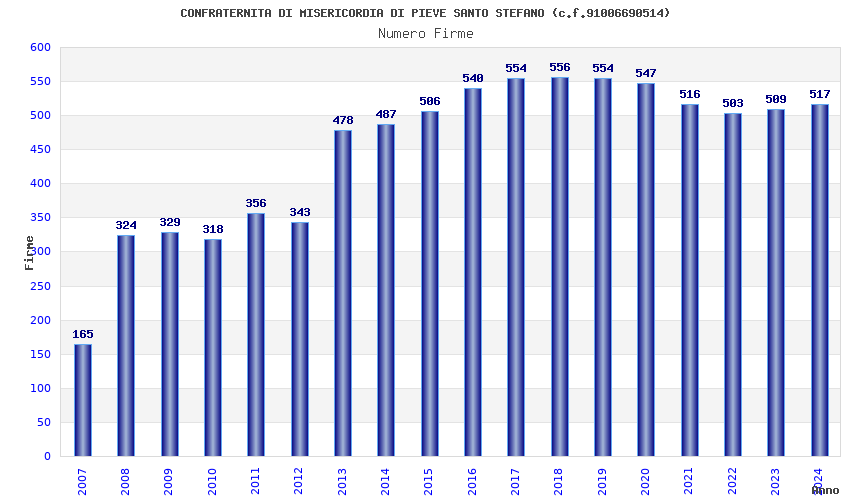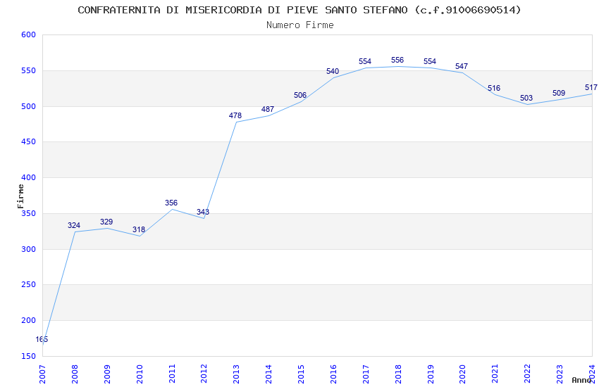 | 2017 | 554 | 11.891,19 | 21,46 | 4.170 | 275 | 27 | 2 |