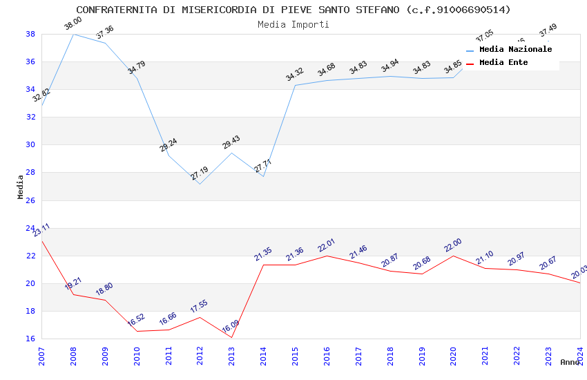 | Anno | Firme | Importi | Media | Naz. | Reg. | Prov. | Comu. |
