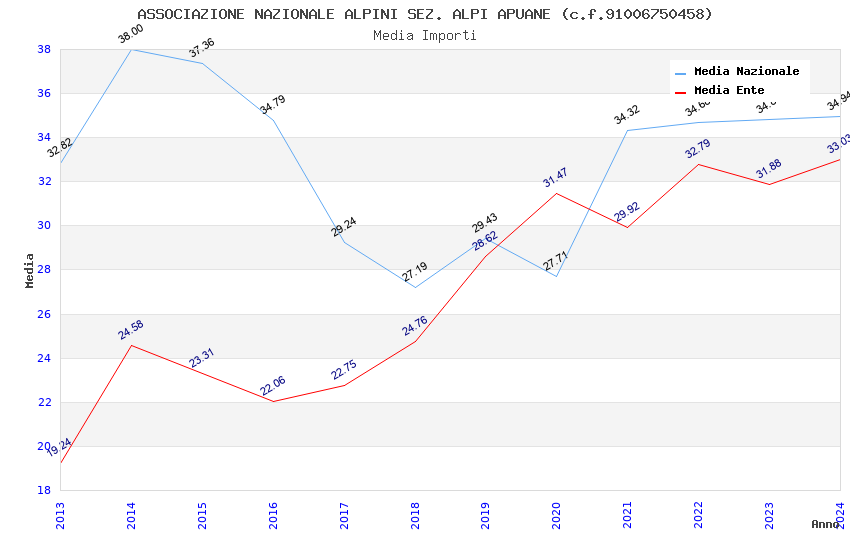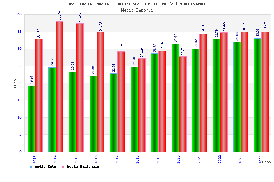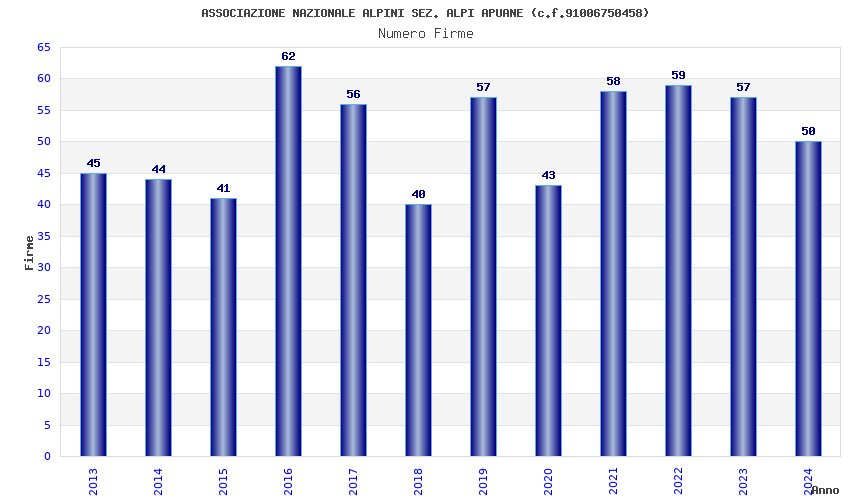 | Anno | Firme | Importi | Media | Naz. | Reg. | Prov. | Comu. |
