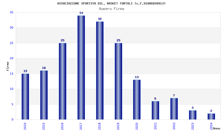 | Anno | Firme | Importi | Media | Naz. | Reg. | Prov. | Comu. |