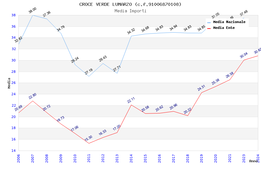 | Anno | Firme | Importi | Media | Naz. | Reg. | Prov. | Comu. |