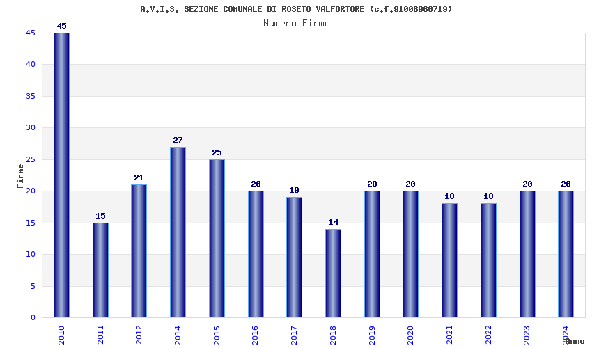 | Anno | Firme | Importi | Media | Naz. | Reg. | Prov. | Comu. |