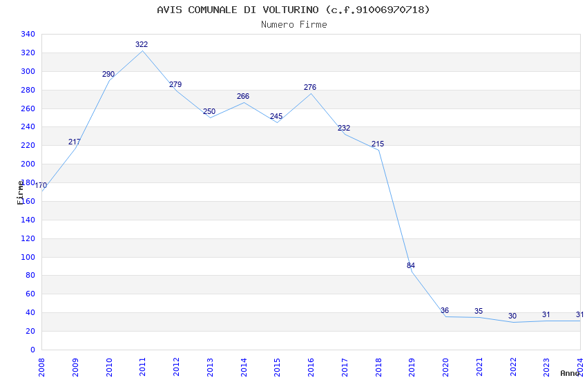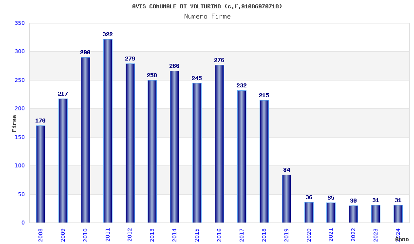Anno Firme Importi Media Naz. Reg. Prov. Comu.