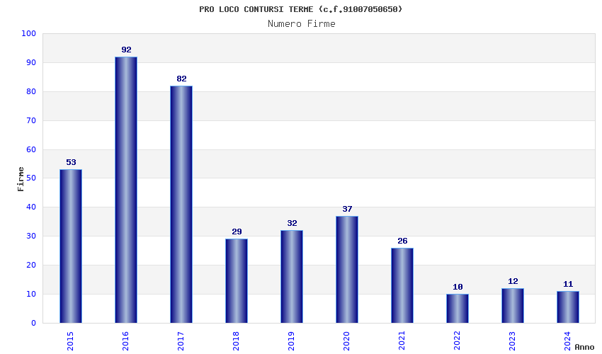 | Anno | Firme | Importi | Media | Naz. | Reg. | Prov. | Comu. |