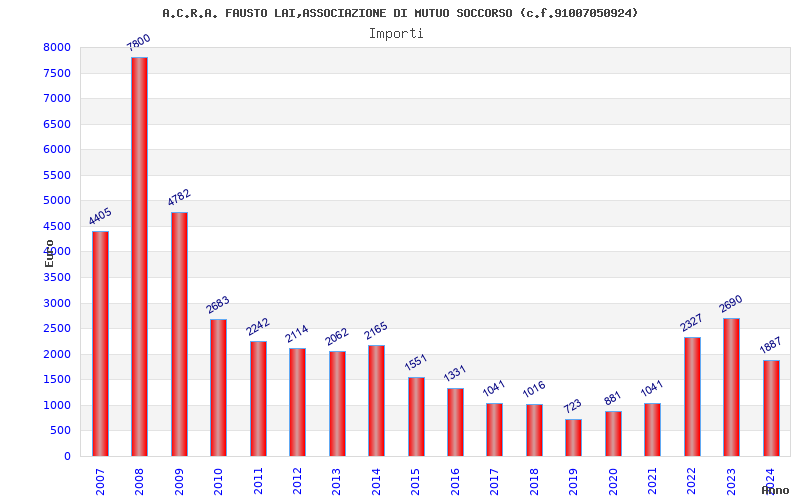 | 2008 | 187 | 7.800,16 | 41,71 | 5.750 | 93 | 10 | 1 |