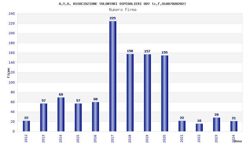 | Anno | Firme | Importi | Media | Naz. | Reg. | Prov. | Comu. |