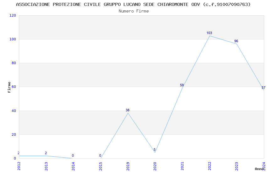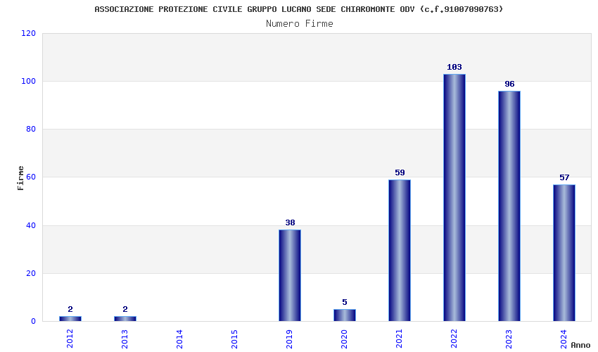 | Anno | Firme | Importi | Media | Naz. | Reg. | Prov. | Comu. |