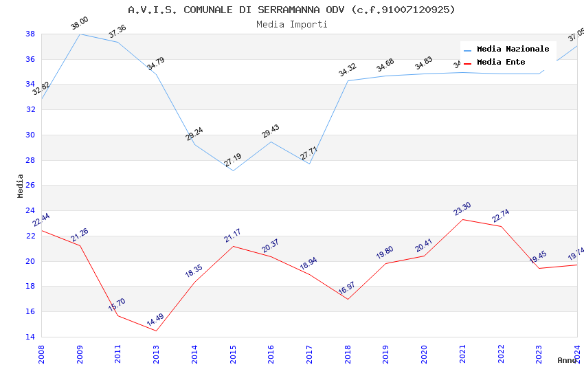 | Anno | Firme | Importi | Media | Naz. | Reg. | Prov. | Comu. |