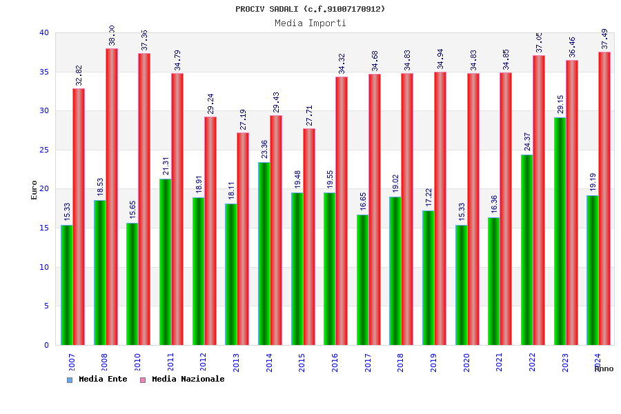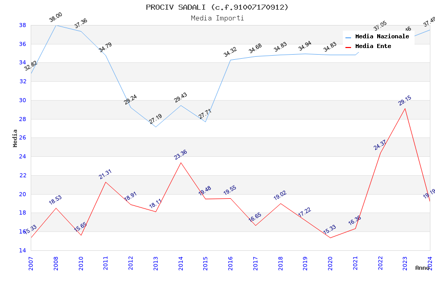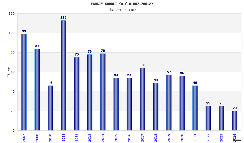 | Anno | Firme | Importi | Media | Naz. | Reg. | Prov. | Comu. |