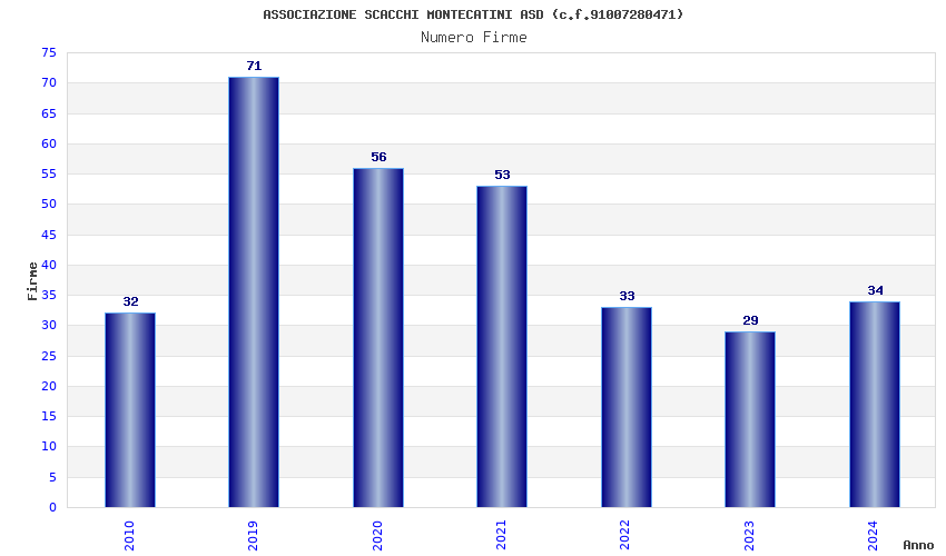 | 2019 | 71 | 2.240,27 | 31,55 | 22.195 | 1.343 | 80 | 8 |