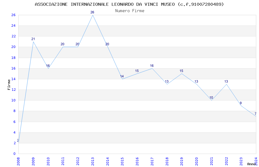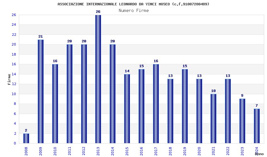 | Anno | Firme | Importi | Media | Naz. | Reg. | Prov. | Comu. |