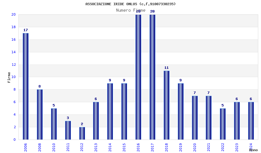 | Anno | Firme | Importi | Media | Naz. | Reg. | Prov. | Comu. |