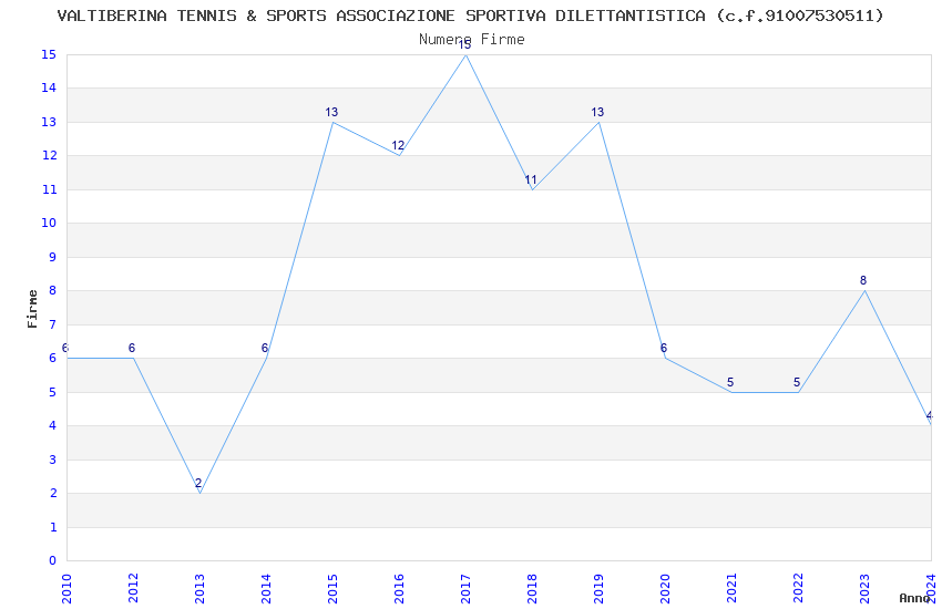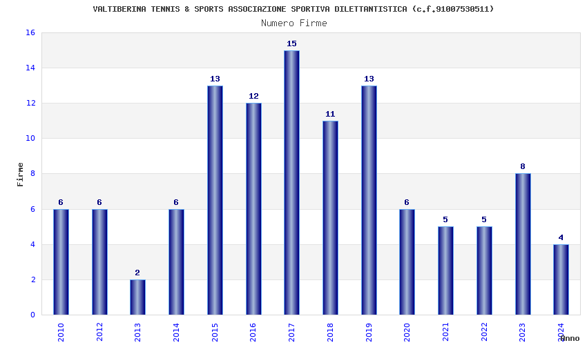 | Anno | Firme | Importi | Media | Naz. | Reg. | Prov. | Comu. |