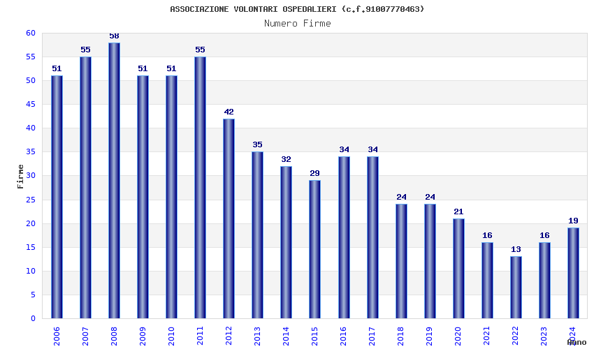 | Anno | Firme | Importi | Media | Naz. | Reg. | Prov. | Comu. |