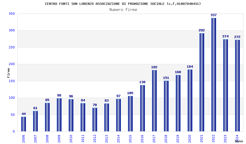 | Anno | Firme | Importi | Media | Naz. | Reg. | Prov. | Comu. |